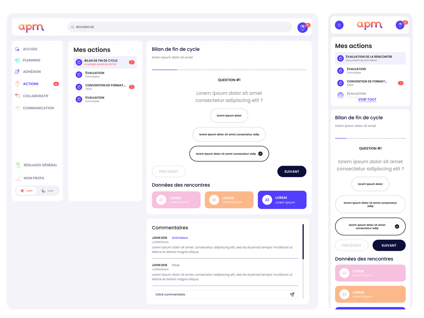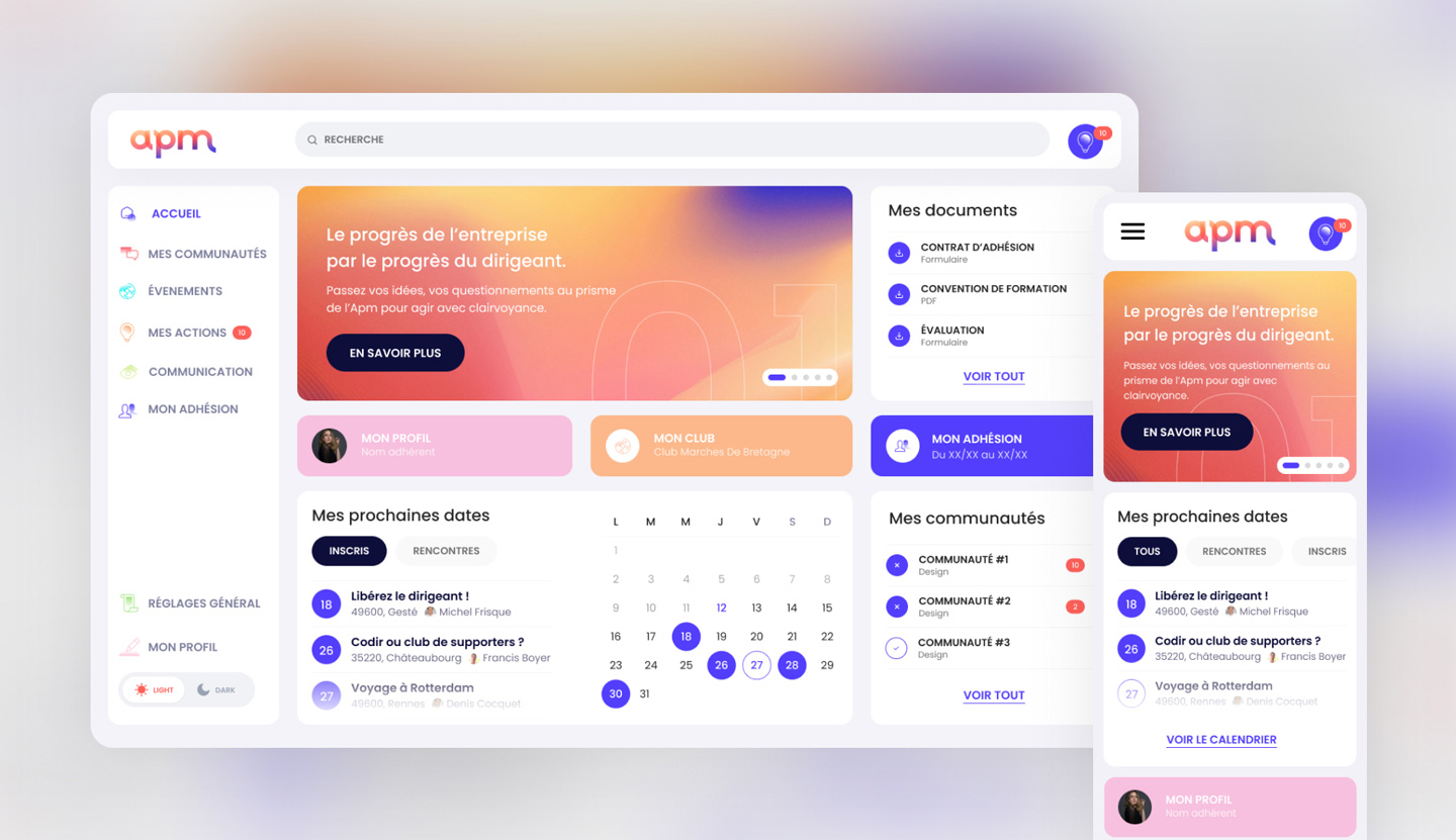 L'APM opère une plateforme B2B nationale connectant un large réseau de dirigeants et d'experts. Le produit devait supporter des workflows opérationnels complexes, de multiples rôles utilisateurs et des volumes massifs de données structurées, avec un niveau d'exigence comparable aux plateformes de ConstructionTech.